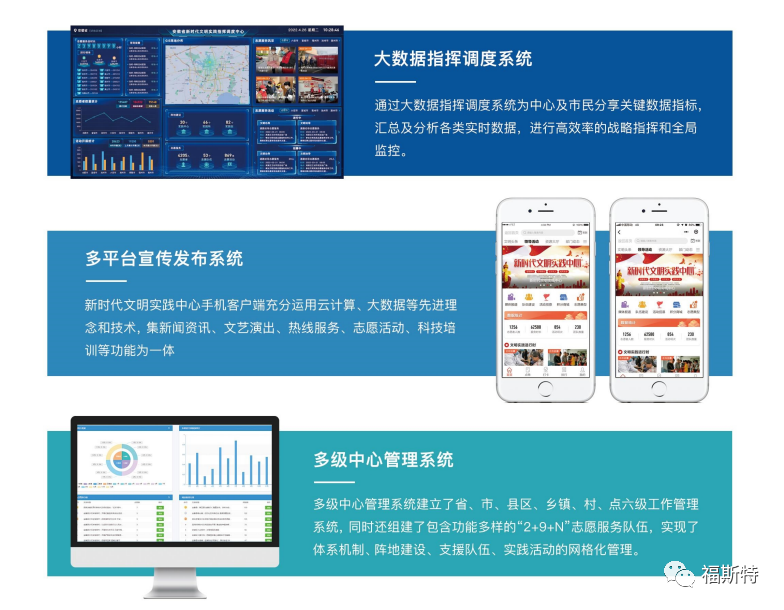 安徽福斯特信息技術(shù)有限公司持續(xù)助力新時(shí)代文明實(shí)踐中心建設(shè),充分利用大數(shù)據(jù)、云計(jì)算、移動(dòng)互聯(lián)網(wǎng)等新一代信息技術(shù),打造新時(shí)代文明實(shí)踐中心云平臺(tái),完善平臺(tái)動(dòng)員、整合、引導(dǎo)、服務(wù)、創(chuàng)新和保障能力,實(shí)現(xiàn)新時(shí)代文明實(shí)踐中心的可持續(xù)運(yùn)營。